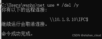 Win+R输入cmd打开命令提示符,执行命令强制删除所有网络共享连接,命令如下:net use * /del /y执行后会断开当前所有的网络驱动器和 Samba 共享连接,清除旧用户的连接会话。