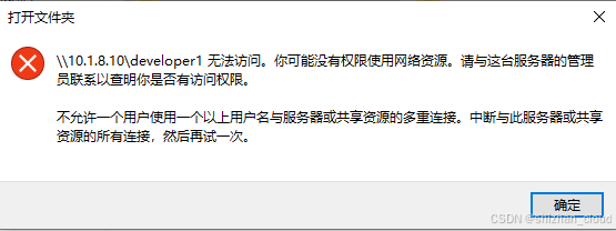 如果要切换用户登录,需要先断开旧的会话。因为Windows 会缓存之前访问 Samba 服务器的用户凭据,且默认不允许同一客户端以多个用户身份同时连接同一台 Samba 服务器。只需在 Windows 端清除旧连接和凭据缓存,再用新用户重新连接即可。