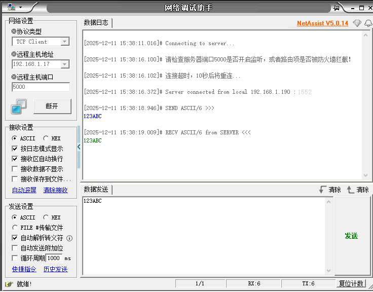 //TCP服务器的IP地址为192.168.1.17,本地端口为5000,保存到Local_Port中