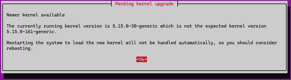 - 系统内核更新,直接回车即可,后续需要重启以及卸载旧版内核(存储空间足够可以不用卸载):