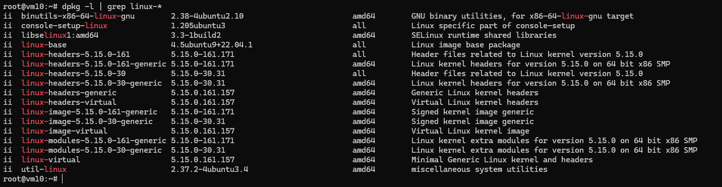 dpkg -l | grep linux-*,结果大致为: