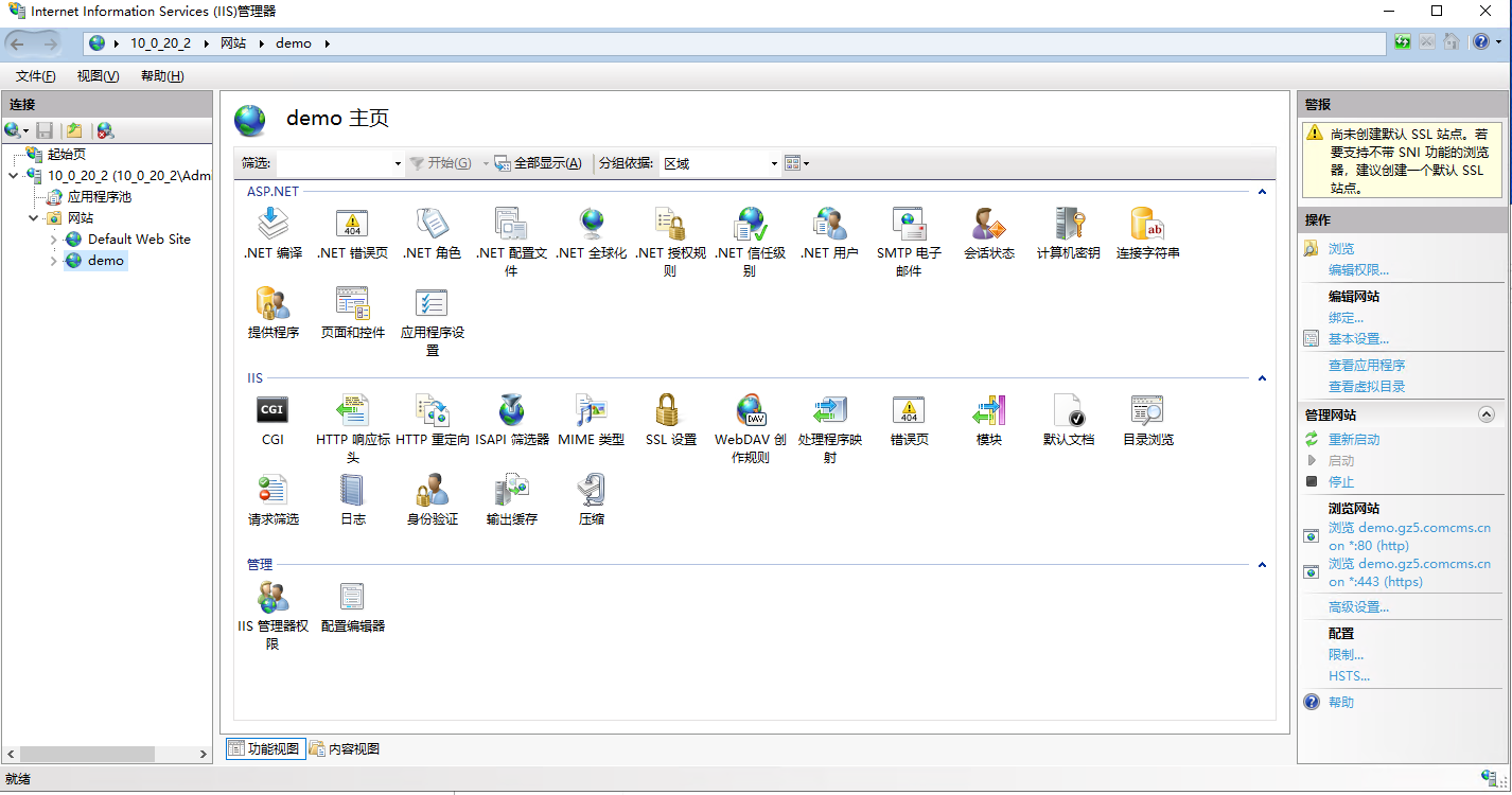这样就自动帮你部署好了。也有证书过期时间,我们可以回到IIS刷新一下站点,就可以看到他已经自动帮你加上证书了: