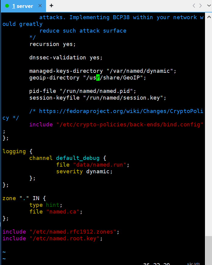vim /etc/named.conf