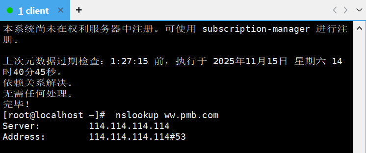 # 2. 安装了bind 之后 可以使用nslookup 他可以看到url地址的解析ip 及 dns服务器信息。
