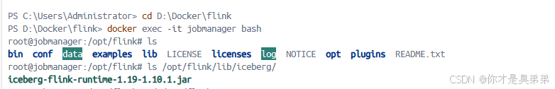 - D:/Docker/jar/iceberg:/opt/flink/lib/iceberg