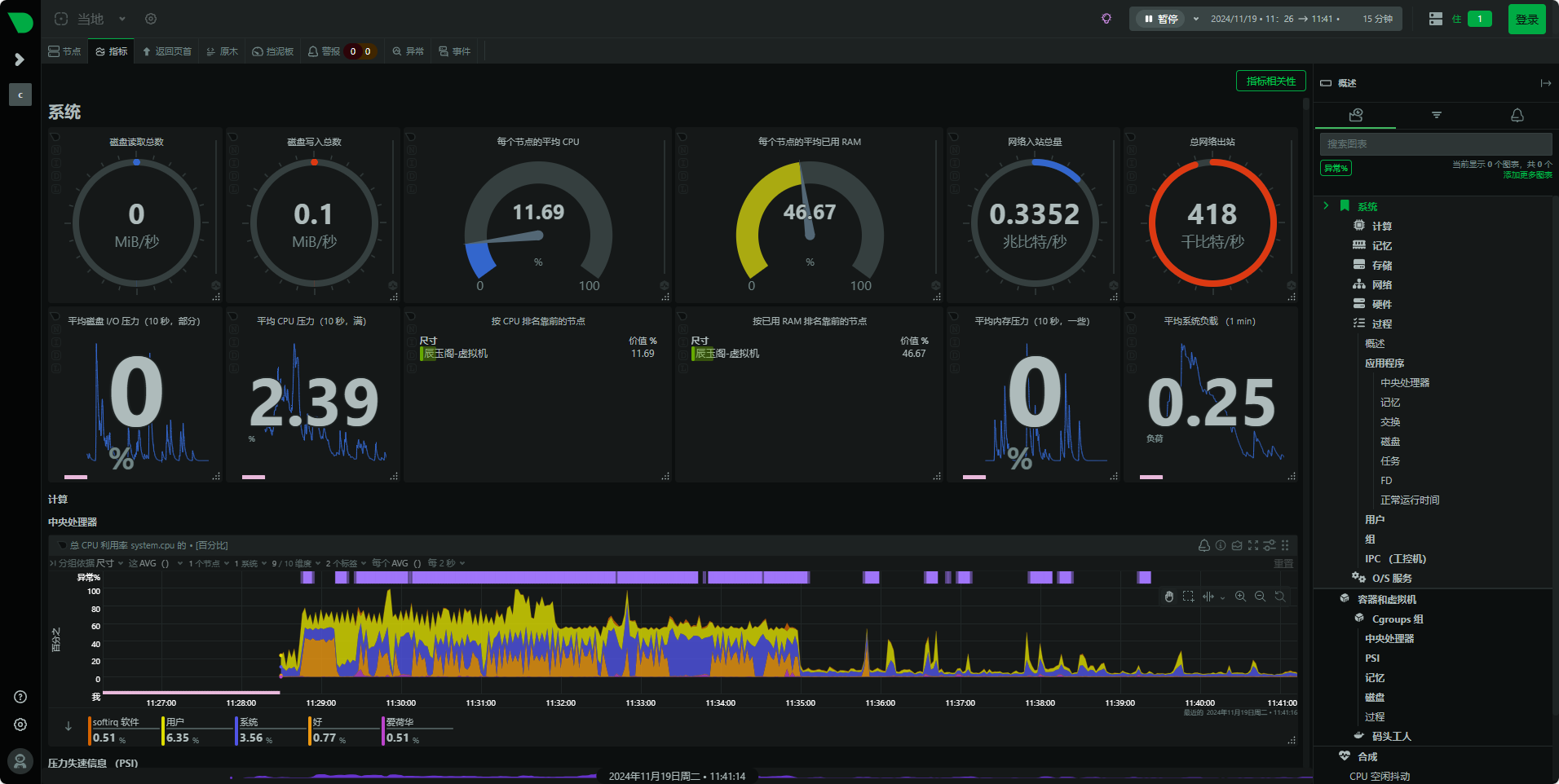 再来看看监控页面,除了配色酷炫,监控项种类繁多之外,页面元素的实时响应、告警设置等都极具亮点。