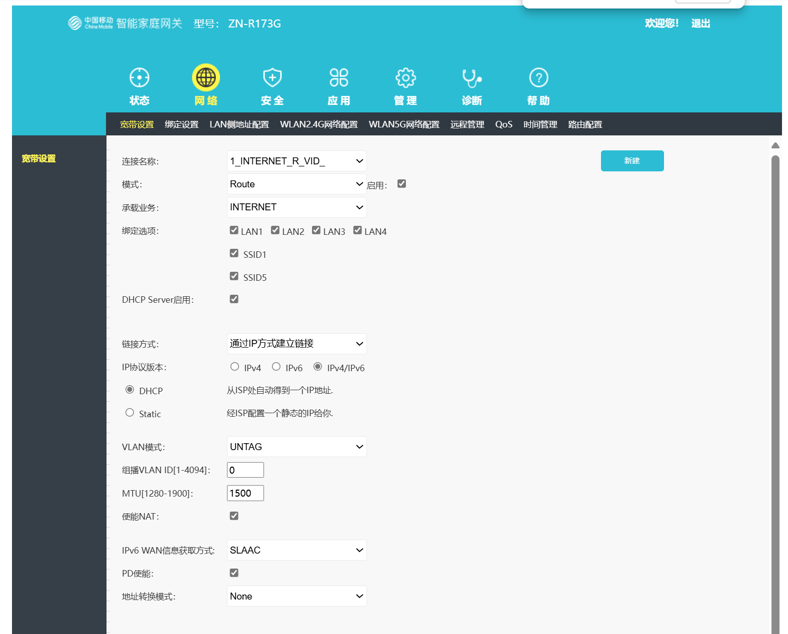 注意:有的光猫需要ITMS注册成功才能上网,其他型号你需要自己去研究怎么强制ITMS注册,一般在“设备”里面有扭转强制注册的按键。