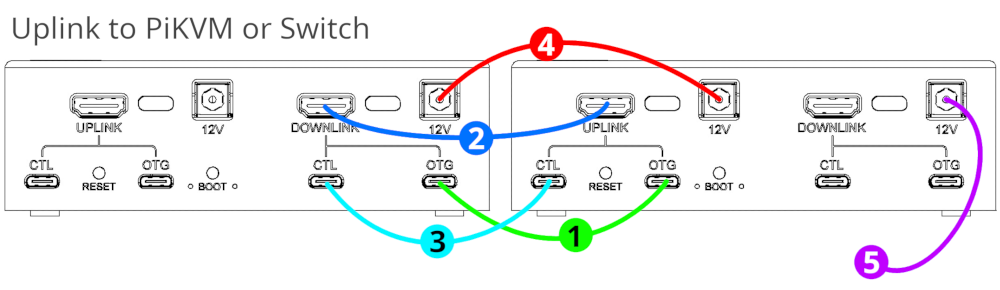 - 当使用电源级联时,不要在PiKVM V4上使用自己的5V电源端口