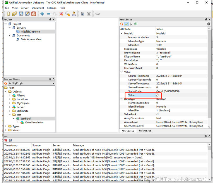 步骤四:opc客户读取值