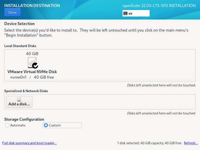 - Open Euler Linux Installation Summary安装总览界面,如图2-15所示: