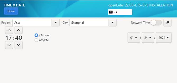 - 操作系统时区选择,选择Asia-Shanghai,关闭Network Time,如图2-22所示: