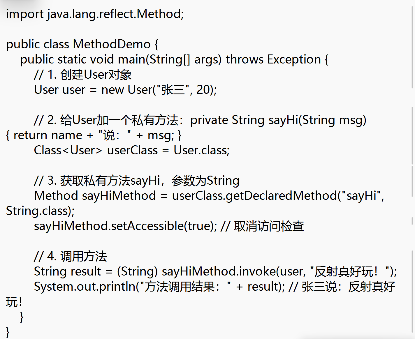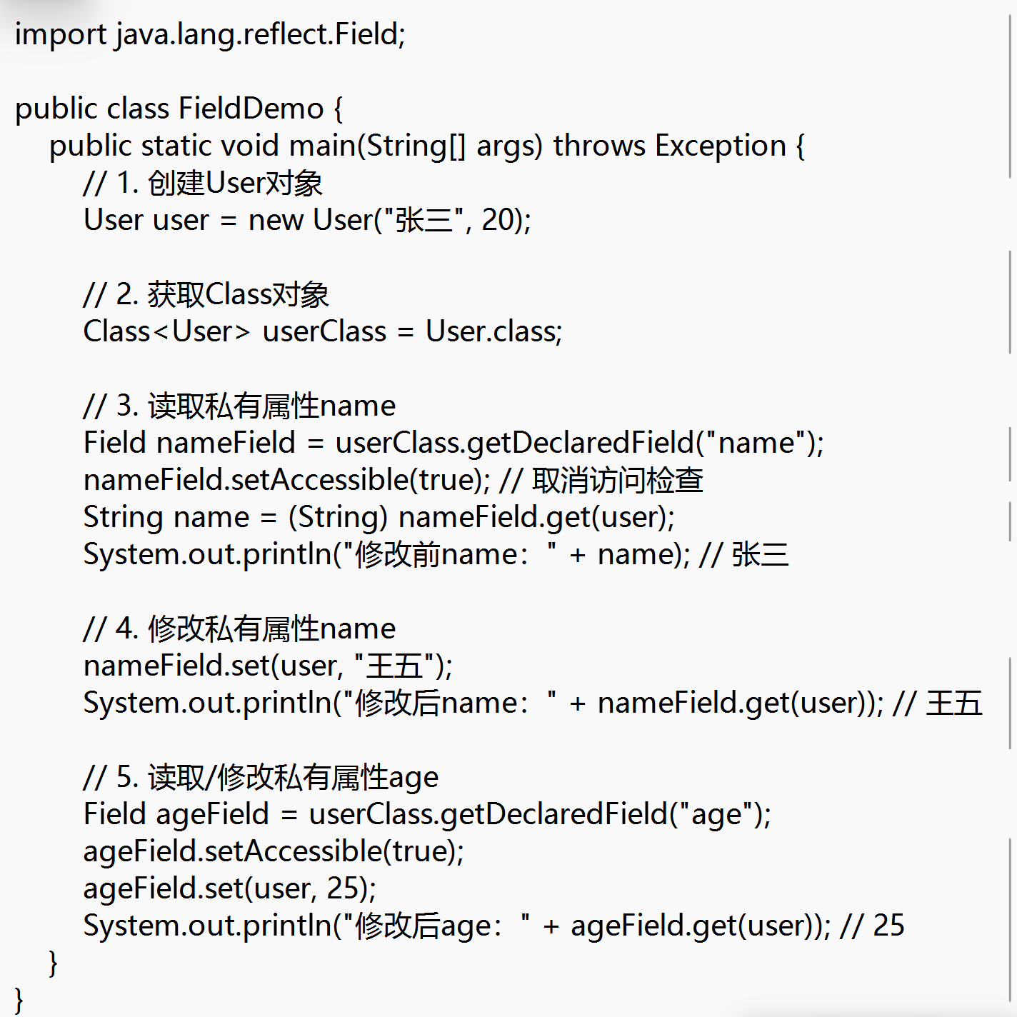 🔧 代码示例:用反射创建User对象