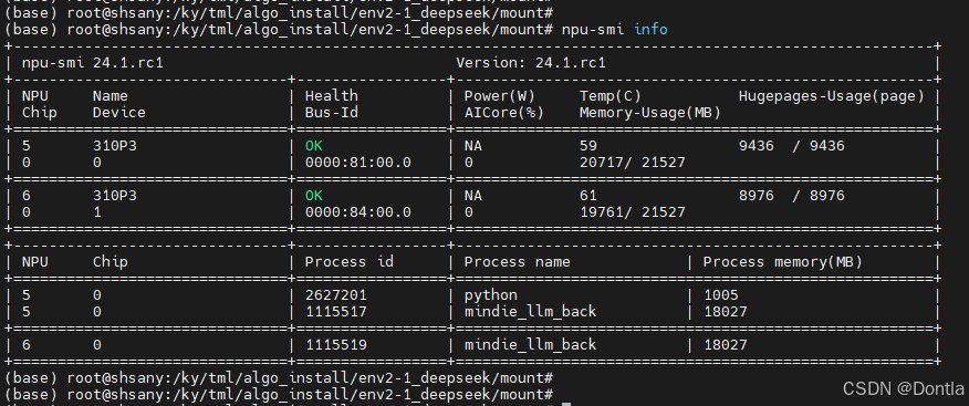 可以看到驱动版本(drive)是24.1.rc1(固件版本看不到):npu-smi info
