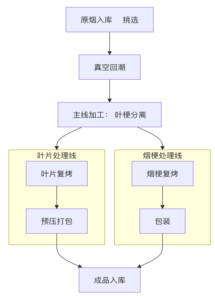 复烤是烟草产业链中承上启下的关键环节,位于农业(烟叶种植)与工业(卷烟生产)之间,被视为“烟草初加工”的核心。它的业务专业性非常强,可以理解成是 “烟叶的定型和品质升华” 的工厂:来自各产区的原烟虽然经过初烘,但水分不均、杂质较多、品质不稳定,尚不能直接用于卷烟生产。通过复烤环节,这些原烟被进一步清理、调湿、定型,最终产出符合卷烟厂制丝工序要求的片烟,为后续工业生产提供标准、均匀、稳定的原料基础。