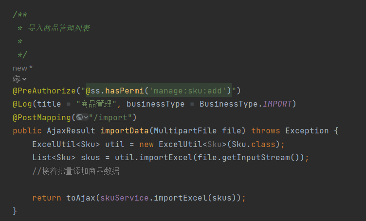 导出功能若依由若依框架实现的,对于导入功能,若依框架没有实现该功能。