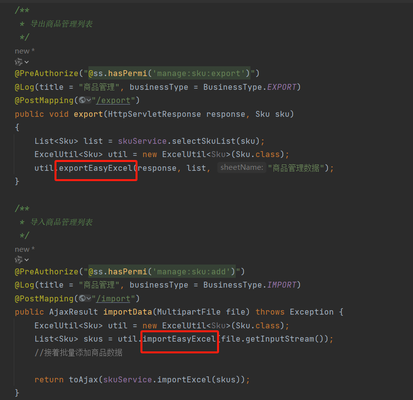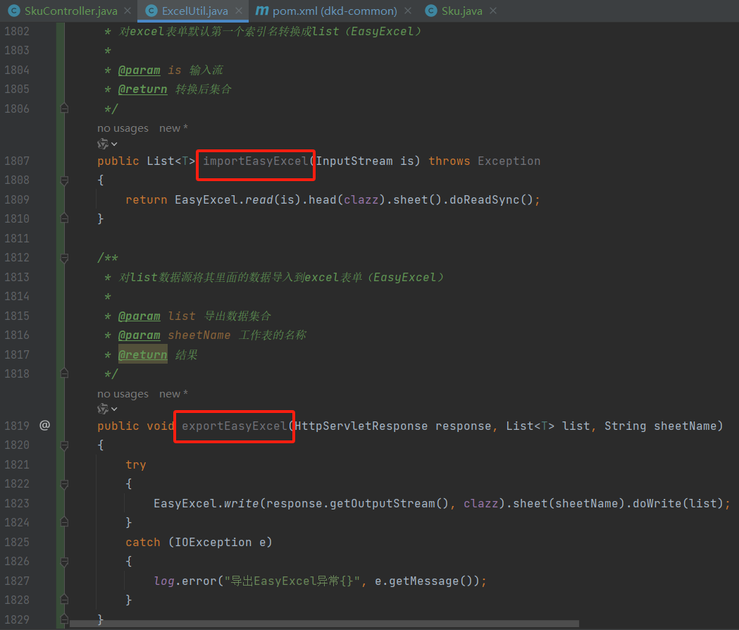 2)在 dkd-common 模块的 ExcelUtil.java 新增 easyexcel 导出导入方法: