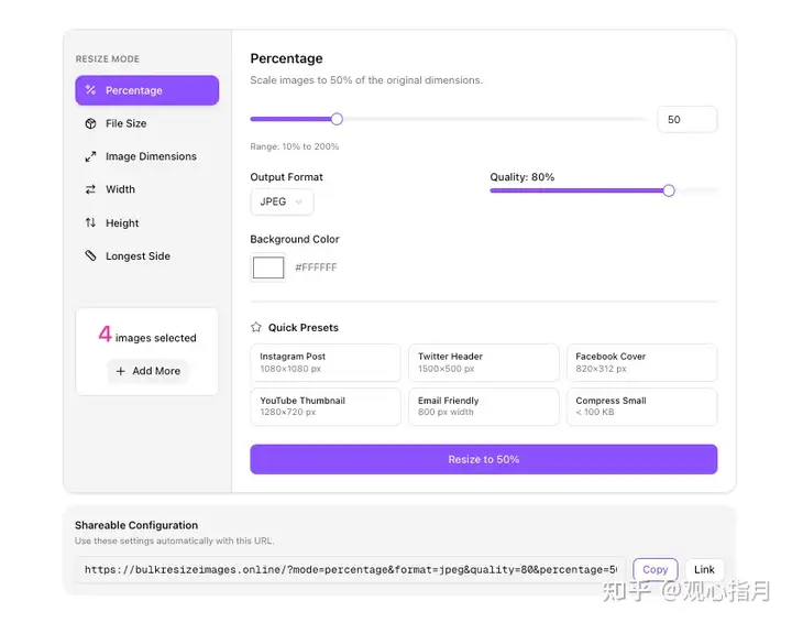 切中要点: 解决了开发者和电商用户急需的高并发、零等待批量处理痛点。它利用 Wasm 加速,支持按像素、百分比或最大尺寸等模式统一调整几十张图片。