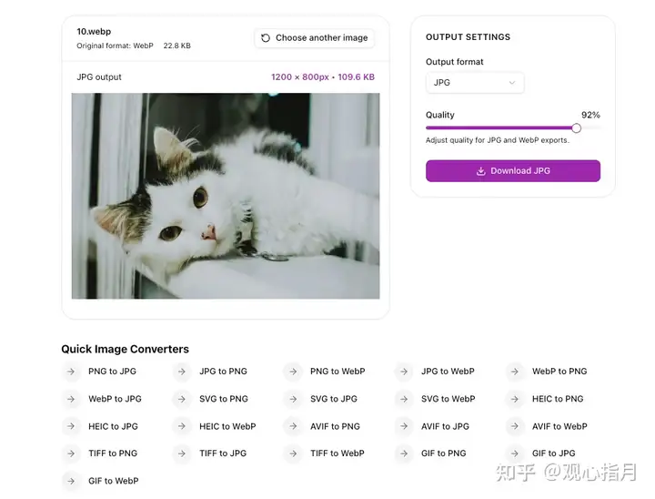 切中要点: 专注于图片在主流与新兴格式间的互相转换(例如 WebP, AVIF, PNG, JPEG)。
