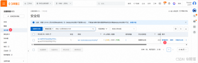 (1)登录阿里云控制台 → 进入你的ECS实例详情页 → 左侧菜单找到「安全组」并点击进入。
