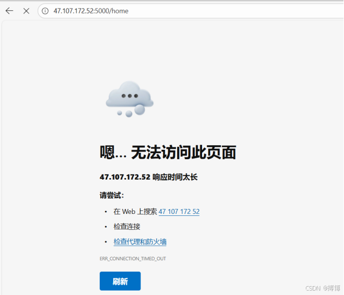第一个问题就是:我们使用了一个服务器没有开放的端口5000。