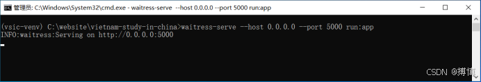 (2)启动命令:waitress-serve --host 0.0.0.0 --port 5000 your_app:app