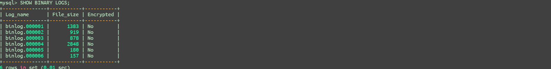 SHOW BINARY LOGS;