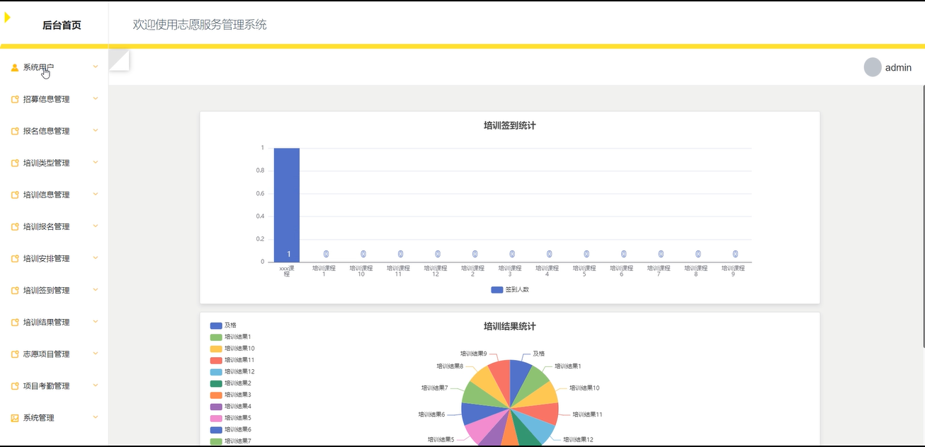 在国内,志愿服务管理系统的研究和应用起步较晚,但随着志愿服务活动的规模不断扩大,管理复杂度逐渐增加,越来越多的研究开始聚焦于如何通过信息化手段提升志愿服务的效率。目前,国内高校和公益组织的管理系统主要集中于数据收集、人员登记和活动发布等基础功能的实现,较为注重用户体验和系统稳定性。一些研究开始尝试将可视化分析引入系统设计,以更直观地呈现志愿服务的统计数据,如志愿者考勤情况和活动参与率。然而,大多数现有系统在功能模块的灵活性和扩展性方面仍有不足,缺乏针对应急预案和培训管理的深度优化方案。