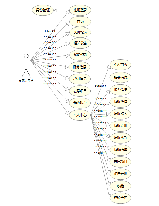(3)功能布局:包括志愿者用户的注册登录、首页信息浏览、论坛互动、报名与培训管理;会长用户的审核与管理功能;以及管理员的全面系统管理。各模块紧密协作,确保系统的高效运行和用户体验。