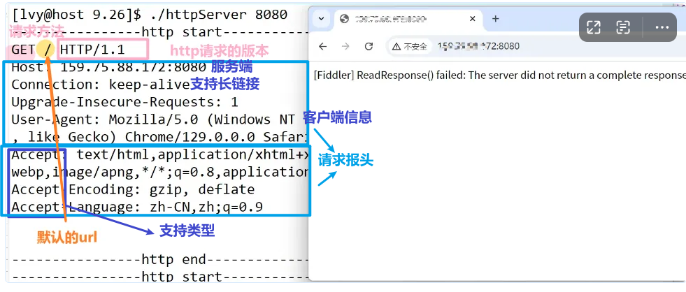 我们可以尝试实现一个简单的 HTTP 服务器,它可以接受客户端连接并返回一个 "Hello World" 网页。为了详细说明这段代码,让我们逐行进行解释。