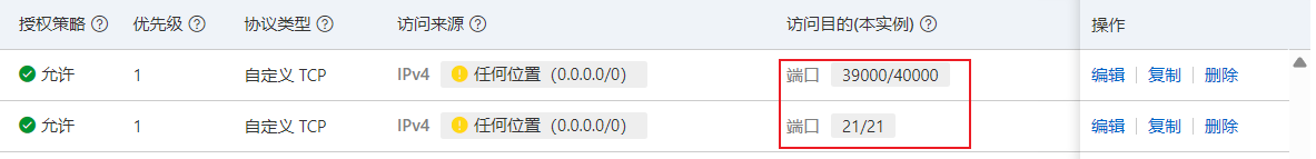 - 说明:FTP使用这些端口进行数据传输,必须开放此范围才能正常传输文件