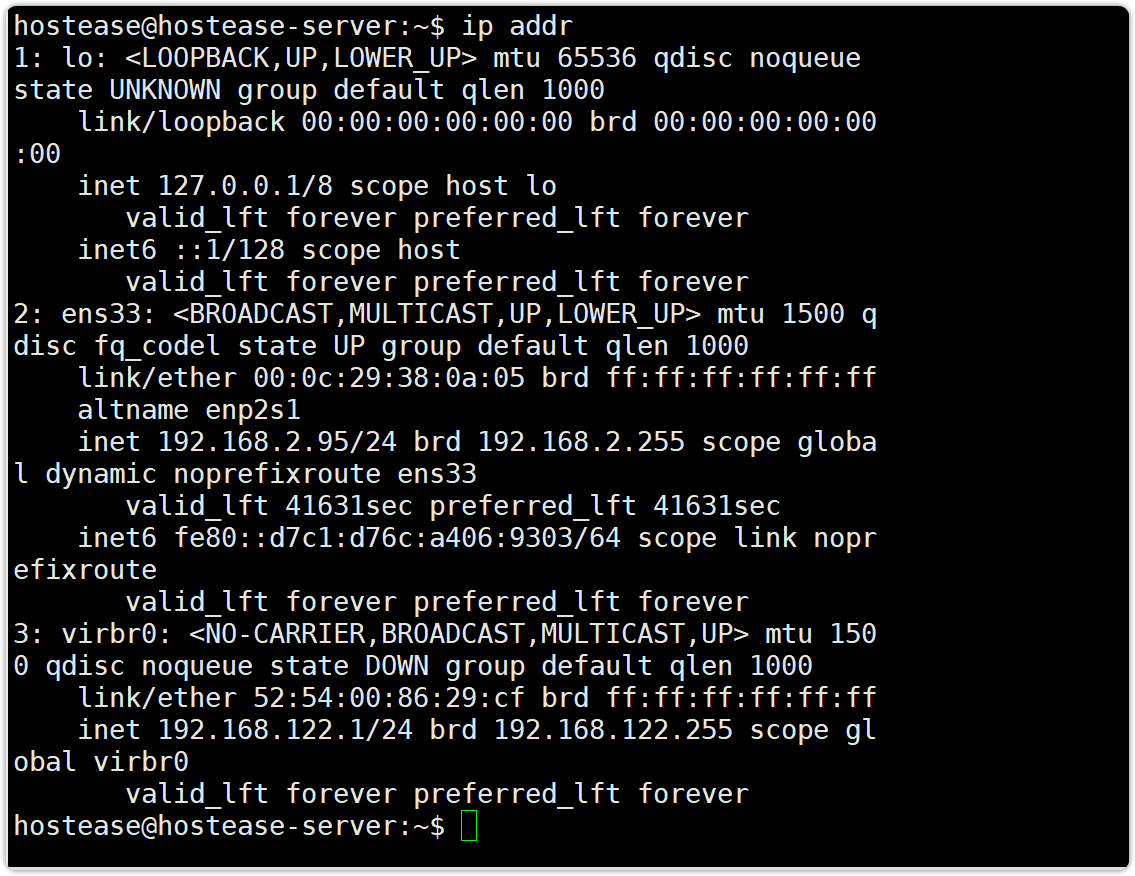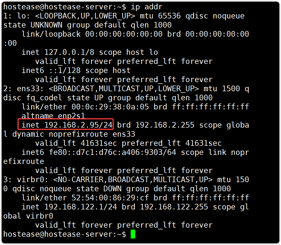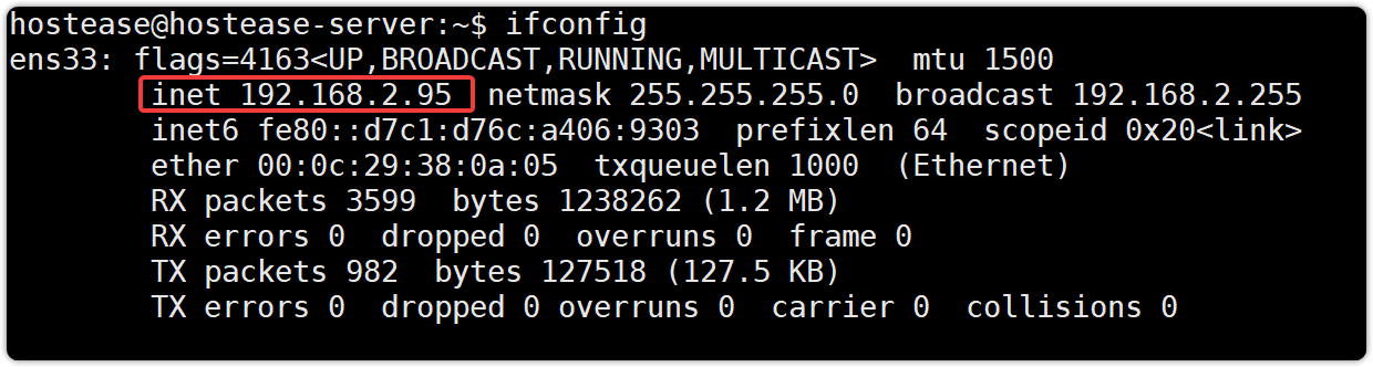 查找inet条目,这就是您的IPv4地址。在此示例中,IP地址是192.168.2.95。