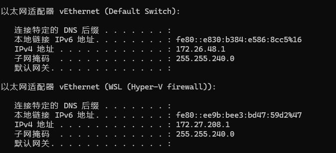 可以发现,此时WSL的IP和主机的IP一致了,这就说明我们的镜像网络模式设置成功!
