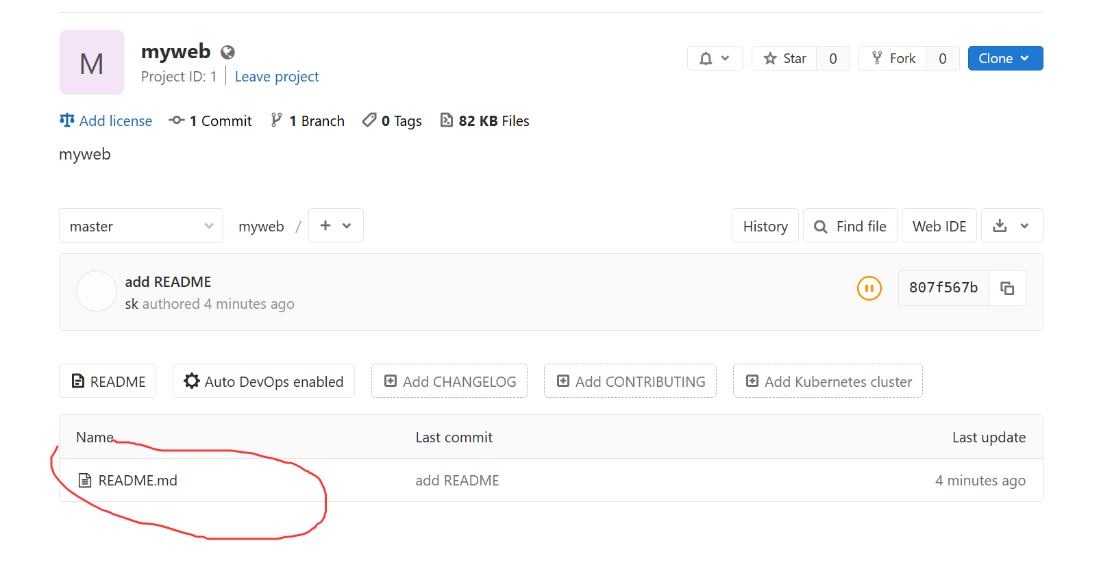 git clone http://192.168.10.23/devops/myweb.git