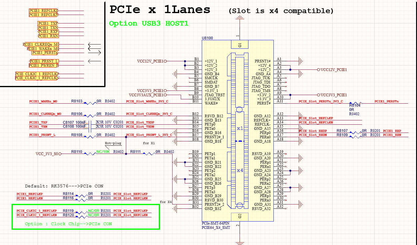 - PCIe2.1 Slot:一路标准的PCIex4 金手指接口;支持RC功能,用于扩展PCIe 设备(Option withUSB3.0 Host);