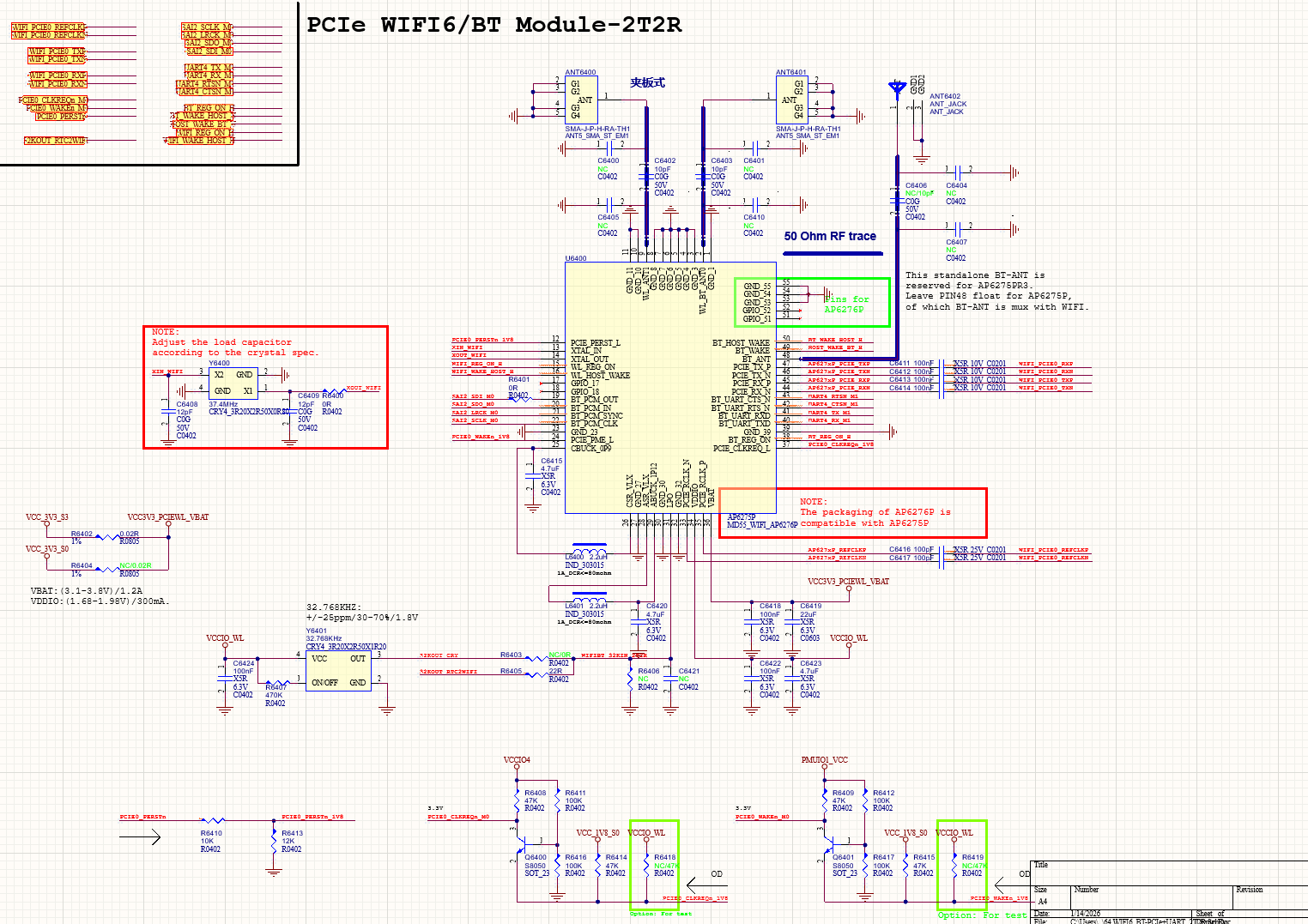 2、BT数据采用UART通信方式,BT语音连接主控SAI接口,WIFI数据采用PCIe数据总线。