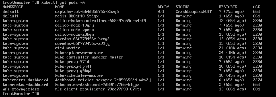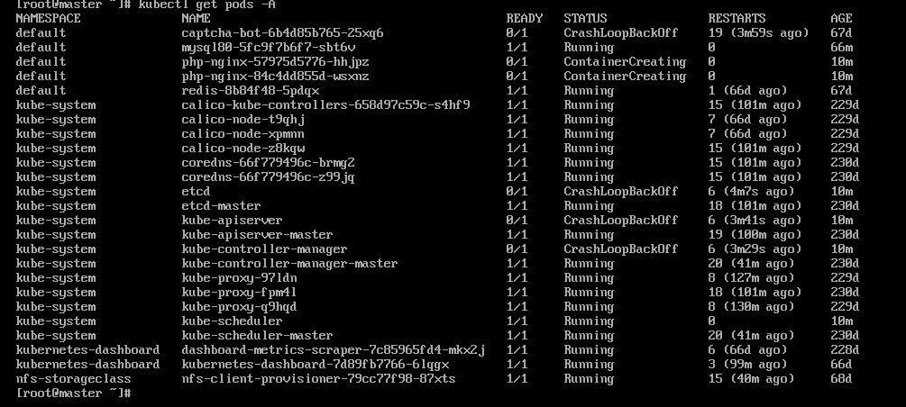 到现在,再次输入指令,master节点只有1个pod无法正常运行。