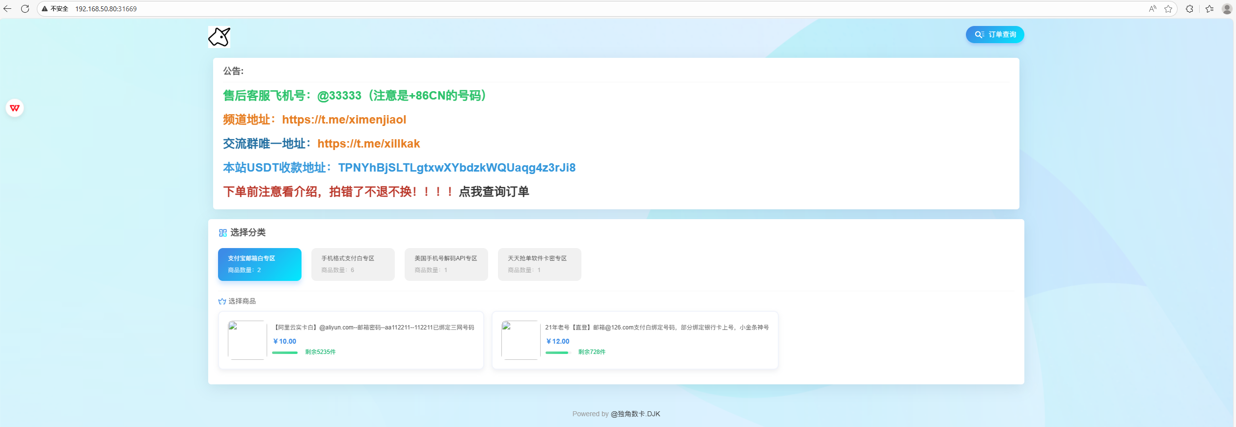 可知有一个dujiaoka(可能是独角数卡),这应该就是发卡网站。