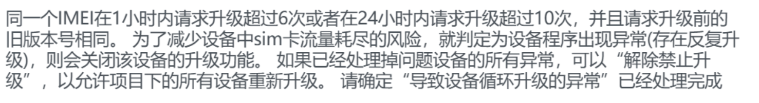 确定“导致设备循环升级的异常”已经处理完成后,点击确定解除,即可解除限制升级