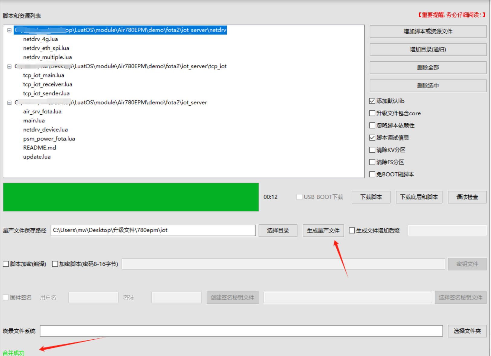 3.然后重新生成一次量产固件,注意:如果是仅脚本升级的话,生成量产固件的时候要和原来保持不变。