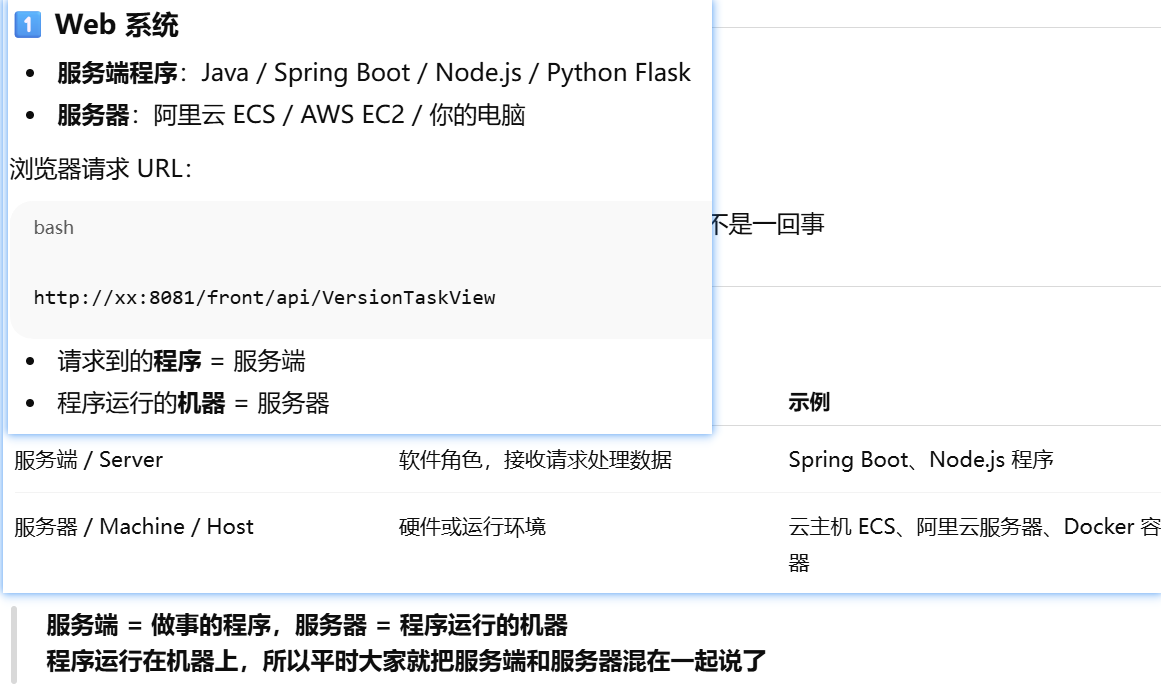- Web 系统会叫前后端/非 Web 系统 一般都是客户端,服务端