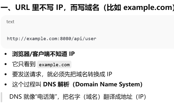 - url里有 IP → 直接用,没有 IP → 调用 DNS 查域名 → 得到 IP