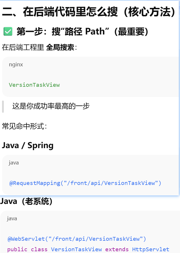 - 怎么在后端代码,搜请求的网址。搜path段,复制一部分关键的路径,都不到就在少复制一点