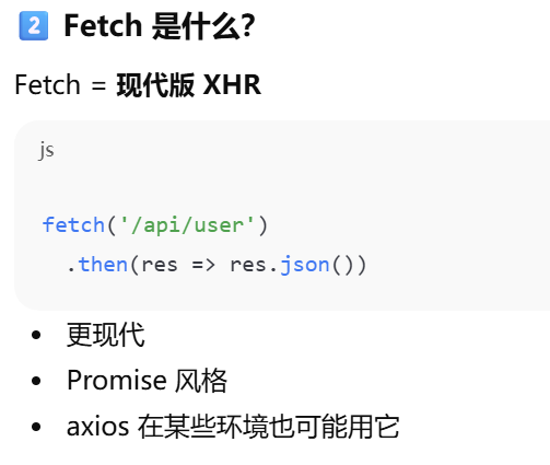 - XHR / Fetch XHR / Fetch 这个筛选器 = 只看“接口请求”,前端请求后端接口,就是:浏览器用来和后端接口“据”的方式