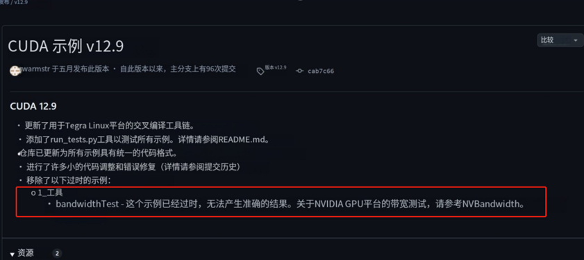 - 测试工具要选择适合的cuda版本,早期的测试工具和cuda版本的目录是在一起的,12.x版本将测试工具和版本目录分隔开,12.9和13.0在原有的基础上将带宽的性能测试分隔开