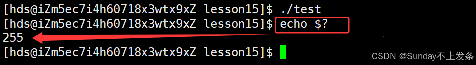 • 说明:虽然status是int,但是仅有低8位可以被父进程所用。所以_exit(-1)时,在终端执行$?发现 返回值是255。