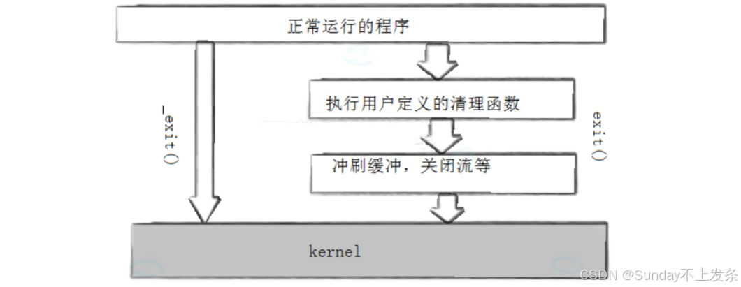 exit 在底层调用了 _exit, 但在此之前还进行了执行用户定义的清理函数和刷新缓冲区,关闭流等操作。