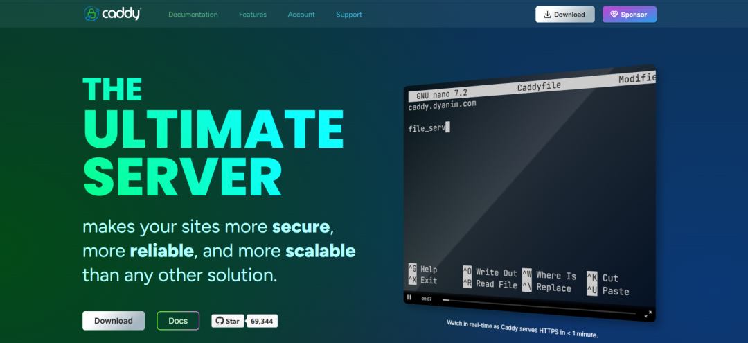 采用 Go 语言编写的现代化 Web 服务器,也可用作反向代理与负载均衡器。最大特色是自动 HTTPS,能够轻松管理 SSL/TLS 证书续期,且无需外部依赖,安装使用极为简便。