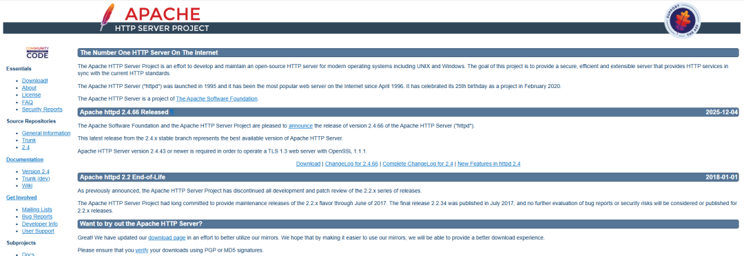 通常简称为 Apache(在基于 Red Hat 的发行版中也叫 httpd),是由 Apache 软件基金会开发的开源 Web 服务器,自 1995 年发布以来一直广受欢迎,至今仍驱动着全球大量网站。