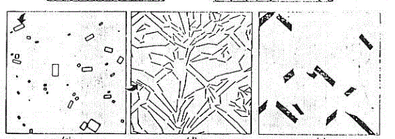 得到以上基元只是完成了未处理的初始简图,还需要对这些基元进行聚类,才能得到初始简图。根据基元的属性(位置、方向、对比度、长宽度),利用接近性、相似性、连续性等格式塔原则,可以将小的基元组合成大的基元。另外,也可以通过纹理的类型及其密度类聚这些元素。聚类的过程是循环的,直到无法聚类为止。如下图11,图(a)先利用接近性组合成团,得到图(b)。然后根据连续性,团会连接成线,即图(c)。
