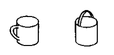 成分识别模型(简称RBC模型)是Biederman(1987)在Marr理论的基础上提出的。该理论的中心假设是,物体由基本形状或被称为几何子的成分组成。几何子是一种广义锥,其例子有方块、圆柱体、球体、圆弧和楔形等立体形状,Biederman一共列出36种几何子。几何子类似于声音中的音素,在英语中大约只有44个音素,但也不妨碍大量英语单词的语音识别。原因是这些音素的几乎无穷无尽的各种组合和不同顺序的排列。视觉也是如此,视觉客体的描述之所以丰富,部分原因在于几何子的组合以及它们之间各种各样的空间关系,如图16。即使由同一组几何子构成,不同的物体有不同的几何子连接情况。例如,杯子和水筒都是由一个圆柱体和一个圆弧体构成,但杯子的圆弧体连接在圆柱体的侧面,而桶的圆弧体连接到圆柱体的顶部,如图17。